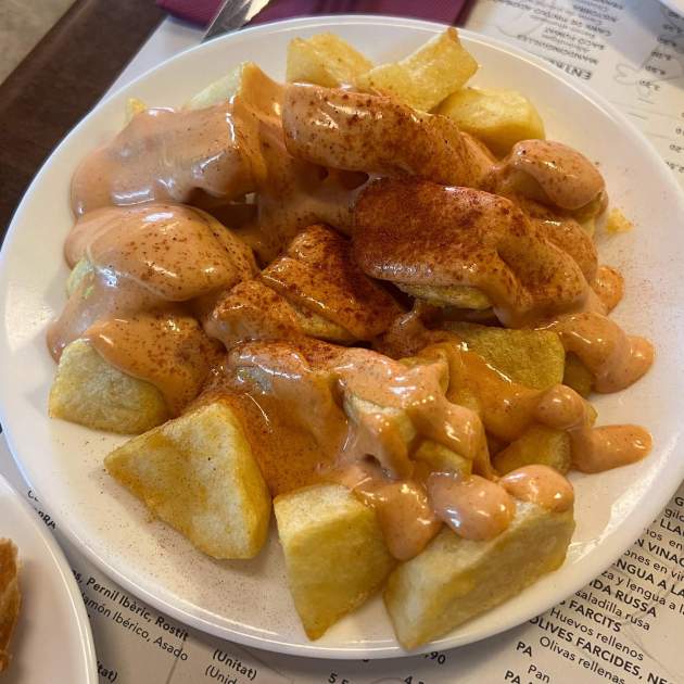 Había que contentarlo y homenajearlo con los antojos que más le apetecieran y, para ello, elegí el Bar Bodega Can Ros, un clásico abierto en 1971 que continúa ofreciendo platos tradicionales de cocina casera. Aquí, el espacio y la atmósfera parecen no haber cambiado demasiado, los platos pasan raudos, la simpatía de los camareros hace que te sientas como en casa y la vitrina está a rebosar de las viandas que te abrirán el apetito de un vistazo.
