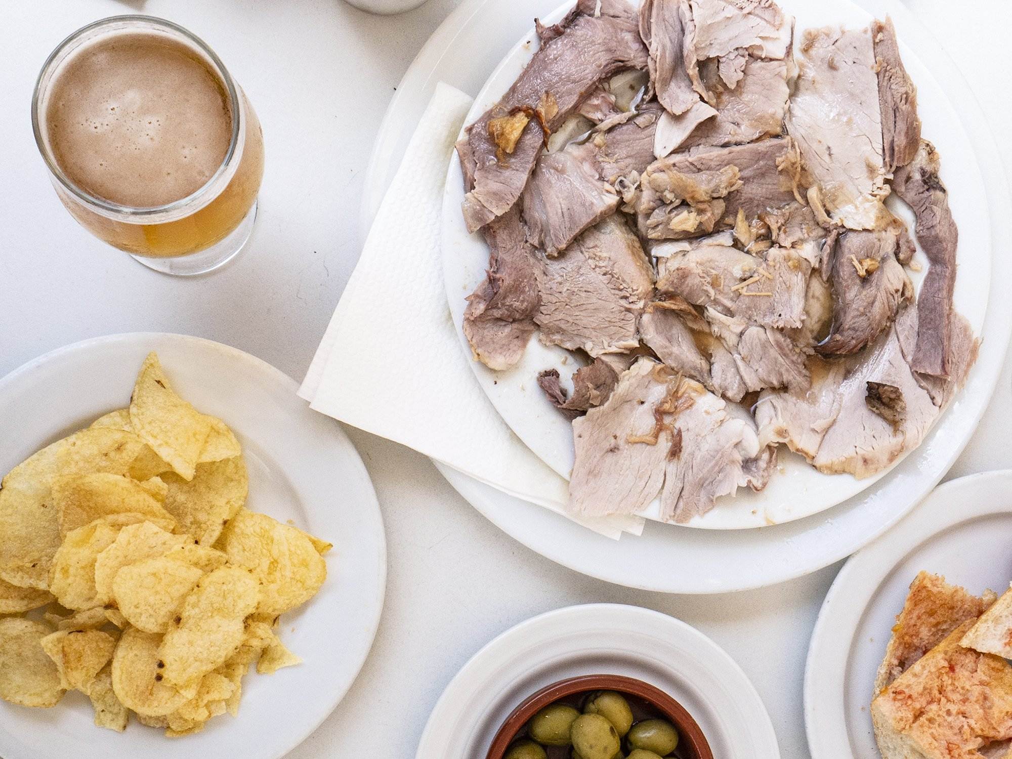 El jamón del Bágoa no es un jamón serrano y tampoco es un jamón dulce: es un muslo de cerdo que se ha puesto al horno para asarlo amorosamente hasta que queda doradito por fuera y muy jugoso por dentro. Es plato de peregrinaje, sea en tapa o en formato bocadillo, y es el más versátil, quizás, de todos: te lo puedes desayunar, comer, cenar y lo puedes hacer de 7 de la mañana a 3 de la madrugada, con gente que madruga o con gente nocturna, como personal de hostelería, basureros, taxistas y farristas.