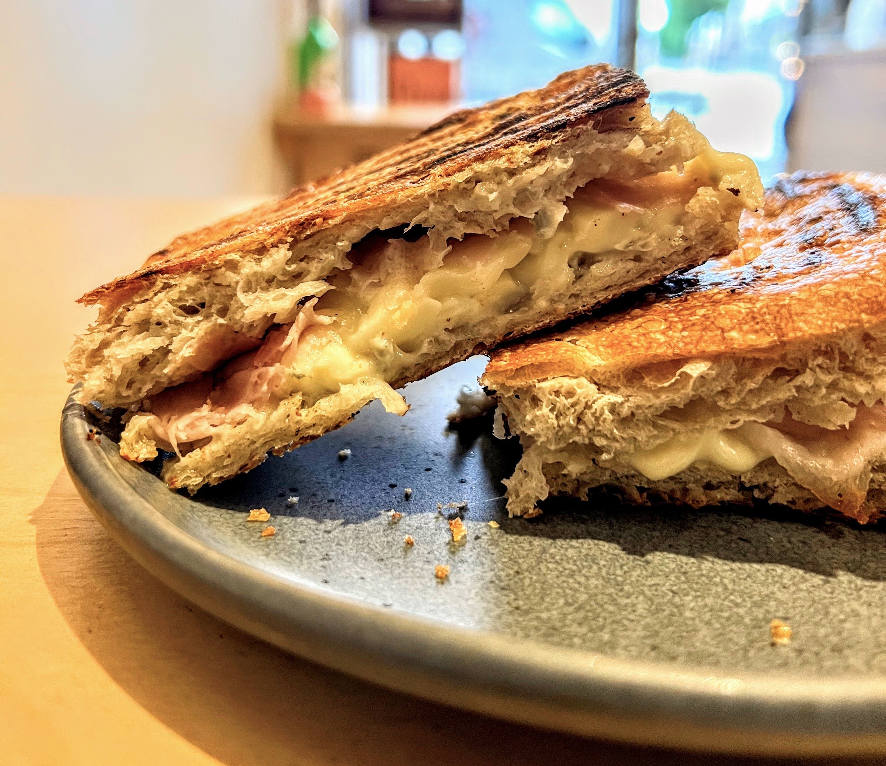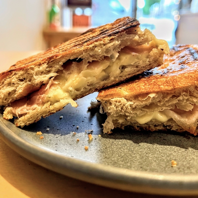 "Cuando nos piden un bikini nos preguntan si solo es de jamón y queso. Contestamos que sí, que más o menos, y cuando lo prueban se llevan una sorpresa", dicen. Porque, aquí, el jamón es de verdad, el pan no es industrial y el queso tiene nombres y apellidos. El secreto del bikini es eso y todavía más: el jamón es prosciutto cotto italiano, el pan es una focaccia de hierbas y el queso es una combinación de crema de queso y mozzarella, y añaden un pequeño contrapunte dulce con un poco de membrillo. "Constantemente buscamos mejorar nuestra oferta y lo hacemos buscando productores, productos y proveedores que nos gusten con el fin de darles visibilidad. Eso se nota en nuestra propuesta, de que ha ido evolucionando con el paso del tiempo. Ponemos el gusto y la calidad por encima de cualquier otro criterio", explica la pareja, y este bikini es una buena prueba de eso.