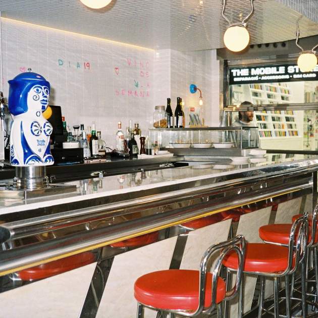Todo lo que rodea la Taberna Nardi evoca el mar: paredes de azulejo blanco, un techo gris con texturas onduladas y detalles azul marino en platos, cartas y camisetas de los camareros. El local no es muy grande, con una barra a mano derecha, mesas altas a la izquierda y cuatro mesas más recogidas en un pequeño rincón del fondo. Una distribución que invita a comer sin entretenerse, pero que permite a cada comensal tener un rincón de intimidad con los suyos. Lo que más llama la atención del espacio, sin embargo, es la vitrina de producto fresco que hay en medio de la barra. Un escaparate que da hambre y donde colocan el producto del día fuera de carta.