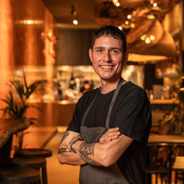 El recorrido de Sánchez Arango es tan intenso como su discurso. Comenzó trabajando en la industria del pescado en Cali con solo quince años, y tras diversas experiencias en España, un accidente le llevó a redescubrir su pasión por la cocina. Formado en la Escola Bellart y con un paso por Mugaritz, A Fuego Negro y Arrea —restaurante que consiguió una estrella Michelin en 2022—, el cocinero llega a Barcelona para dar vida a su sueño más personal.
