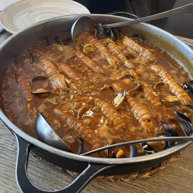 La galera es un producto único. Un marisco muy típico de la zona, pero mucho menos conocido que las gambas, las cigalas o incluso el bogavante. La galera es muy buena, pero para disfrutarla uno se lo tiene que trabajar. Pelar galeras no es como pelar gambas. Las galeras pinchan, tienen mucha cáscara y se tienen que saber comer. Pero lejos de echar atrás si no sabes, hace que disfrutarlas sea aún más divertido. Ahora bien, la galera no es la única protagonista del plato. El arroz, y especialmente el suquet que lo riega todo, son buenísimos. Además, la ración es muy generosa, y si te sobra, te lo pueden poner para llevar.