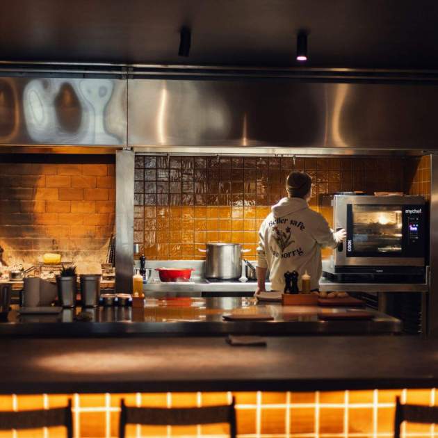 Desde la barra, el comensal puede observar durante la comida —desde un cómodo taburete— cómo el chef, junto con el jefe de cocina, Marc Chic, doman las brasas con una precisión extrema, mientras cocinan al fuego, sin parar de remover cazuelas y sartenes, para acabar montando los platos delante de ti. Ayudados siempre por Roman en la cocina, y Mia, que controla la sala. La carta del restaurante Sisè, que renuevan semanalmente, la conforman únicamente seis primeros platos y seis segundos, pero ¡Dios mío señor, qué doce platos!