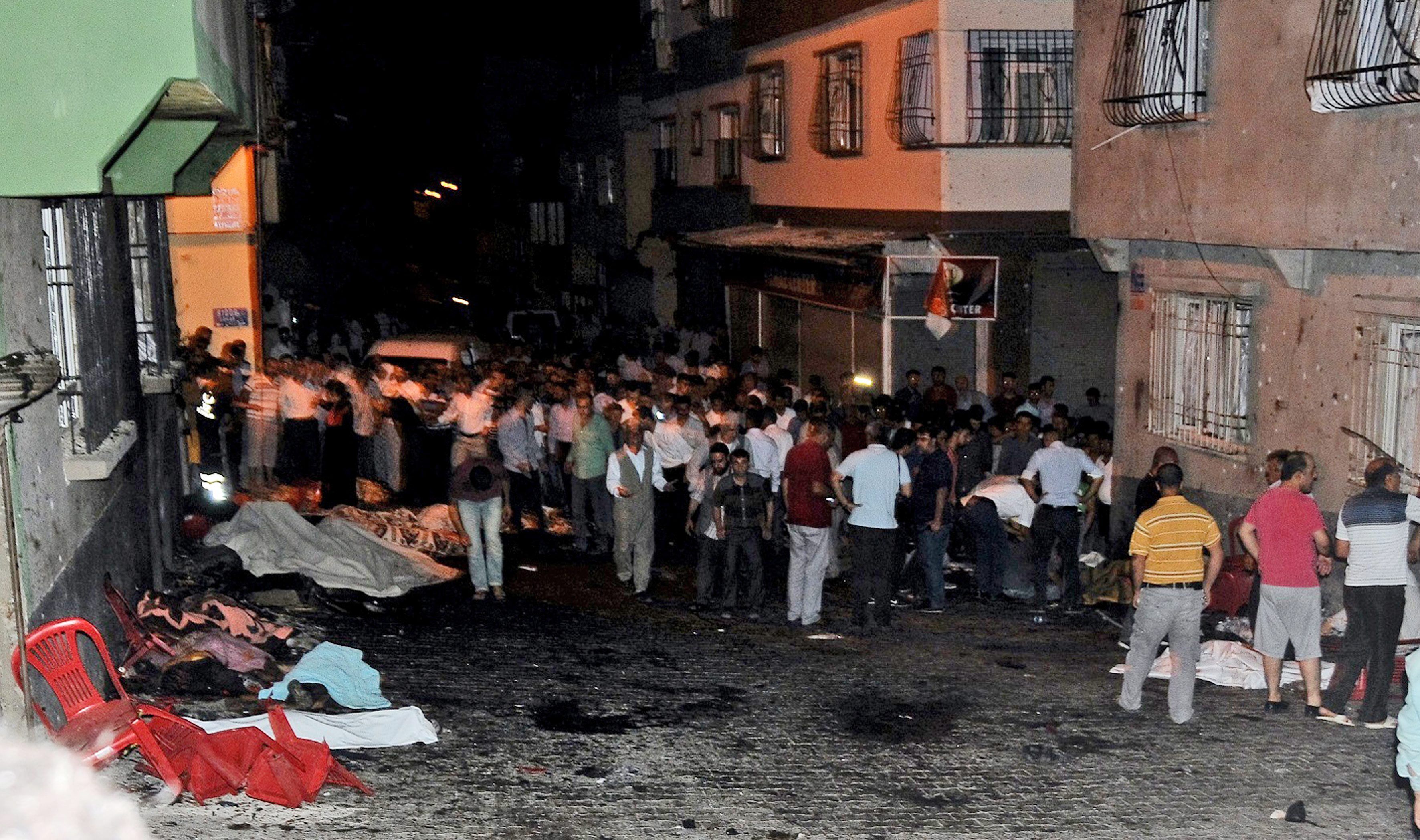 Aunque no se han dado todavía detalles sobre los supuestos autores, el presidente turco, Recep Tayyip Erdogan, ha descrito el ataque como "probablemente cometido por el Dáesh" (Estado Islámico). Si bien varios diputados locales han indicado la "gran probabilidad" de un atentado suicida, una cadena de televisión local señala que la detonación procedía de una bomba colocada en un carrito de bebé, informa el diario a Evrensel.