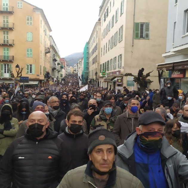 Anoche, varios centenares de personas se habían concentrado en Ajaccio o Alta Córcega, como Calvi o Bastia. Sin embargo, muy rápidamente, estallaron enfrentamientos entre algunos manifestantes y las fuerzas del orden. En Ajaccio, los choques continuaron hasta a medianoche. En el pasillo del juzgado, se quemaron desperdicios y otros incendios ennegrecieron la fachada. "Hubo un incendio en la planta baja de la corte, no se extendió por los pisos pero sí que hubo muchos daños", dijo a l'AFP Jean-Jacques Peraldi, director de los servicios de bomberos y rescate de Córcega. Posteriormente, algunos manifestantes, equipados con una miniexcavadora mecánica, degradaron una sucursal de Crédit Agricole, antes de dirigirse a la Place Claude Érignac, un lugar muy simbólico, ya que Yvan Colonna fue condenado por el asesinato del prefecto de Córcega. Intervinieron varias personas para evitar daños, un hombre subió a la excavadora y gritó: "No somos escoria, somos patriotas, sale de aquí". Al menos 14 personas resultaron heridas, incluido un periodista de TF1 en la pierna, según la prefectura.