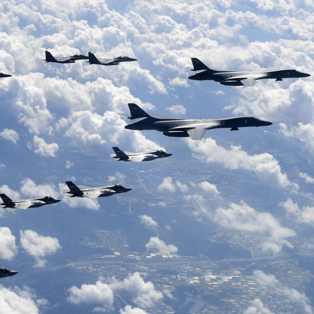 Los diez aviones usados por los Estados Unidos y Corea del Sur en estas maniobras militares son explícitamente dos bombarderos norteamericanos B-1B y ocho cazas surcoreanos, cuatro F-35 y cuatro F-15K.