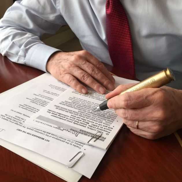 La industria militar colombiana donó 500 municiones de fusil que se usaron en combate y, después, el Ministerio de Eduación les quitó la pólvora. Junto con la agencia McCann Colombia y el estudio de diseño Reinhard Dienes Studio y Pablo Fog crearon este artilugio, con el que la ministra de Educación ya ha firmado varios contratos como "bandera del cambio".