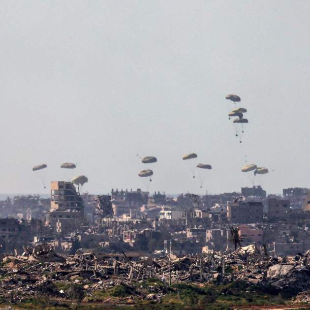 Múltiples países han participado en el lanzamiento de ayuda humanitaria desde aviones en las últimas semanas, incluyendo a los Estados Unidos, Francia, Bélgica, Jordania, Egipto y los Emiratos Árabes. La vía aérea es una respuesta a las restricciones impuestas por Israel a la entrega de ayuda humanitaria a Gaza. El presidente de los EE.UU., Joe Biden, anunció este jueves la construcción de un puerto temporal en la costa de Gaza para facilitar la entrada de la ayuda a través del corredor mediterráneo que abrirá Chipre este fin de semana. Sin embargo, la ONU ha reclamado que "nada puede sustituir la llegada de ayuda y tráfico comercial a gran escala a través de rutas terrestres".