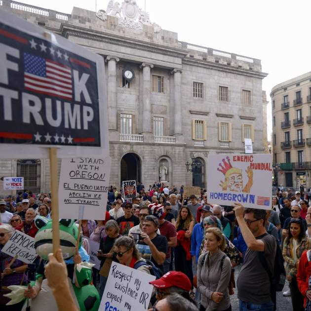 Las protestas No Kings traspasaron fronteras y tuvieron réplicas solidarias en varias ciudades del mundo. En Barcelona, centenares de personas se concentraron en la plaça de Sant Jaume, convocadas por colectivos de derechos humanos y miembros de la comunidad norteamericana residente en la ciudad, con pancartas que reclamaban “Resist Trump Fascim”, “ForaTrump”, “Trump dirnks Gazpacho with a Straw” y “No Kings, No Dictators”. También hubo movilizaciones en Madrid, Málaga, París, Berlín, Ámsterdam y Estocolmo, donde centenares de personas salieron a la calle para expresar apoyo a los manifestantes de Estados Unidos.