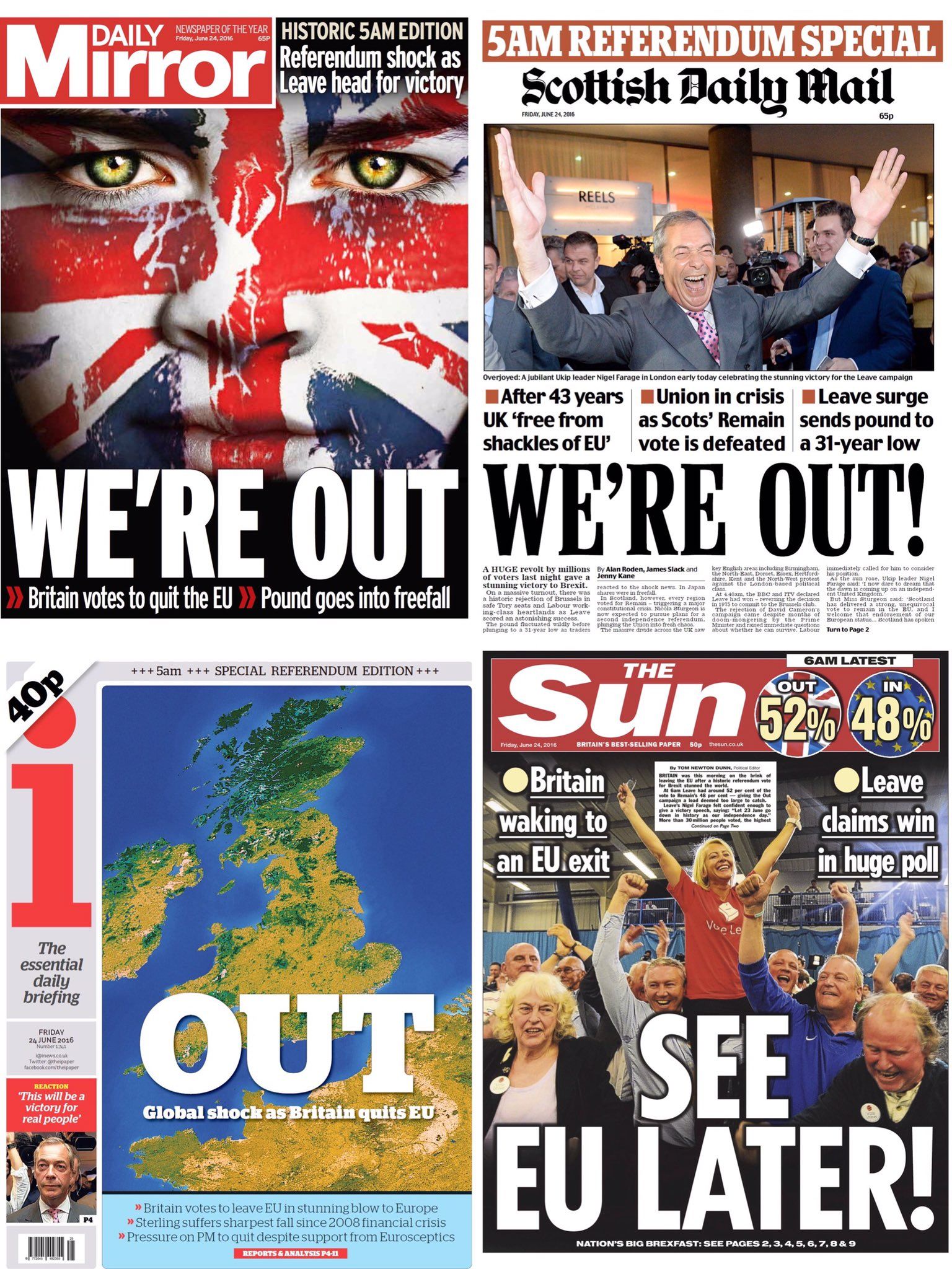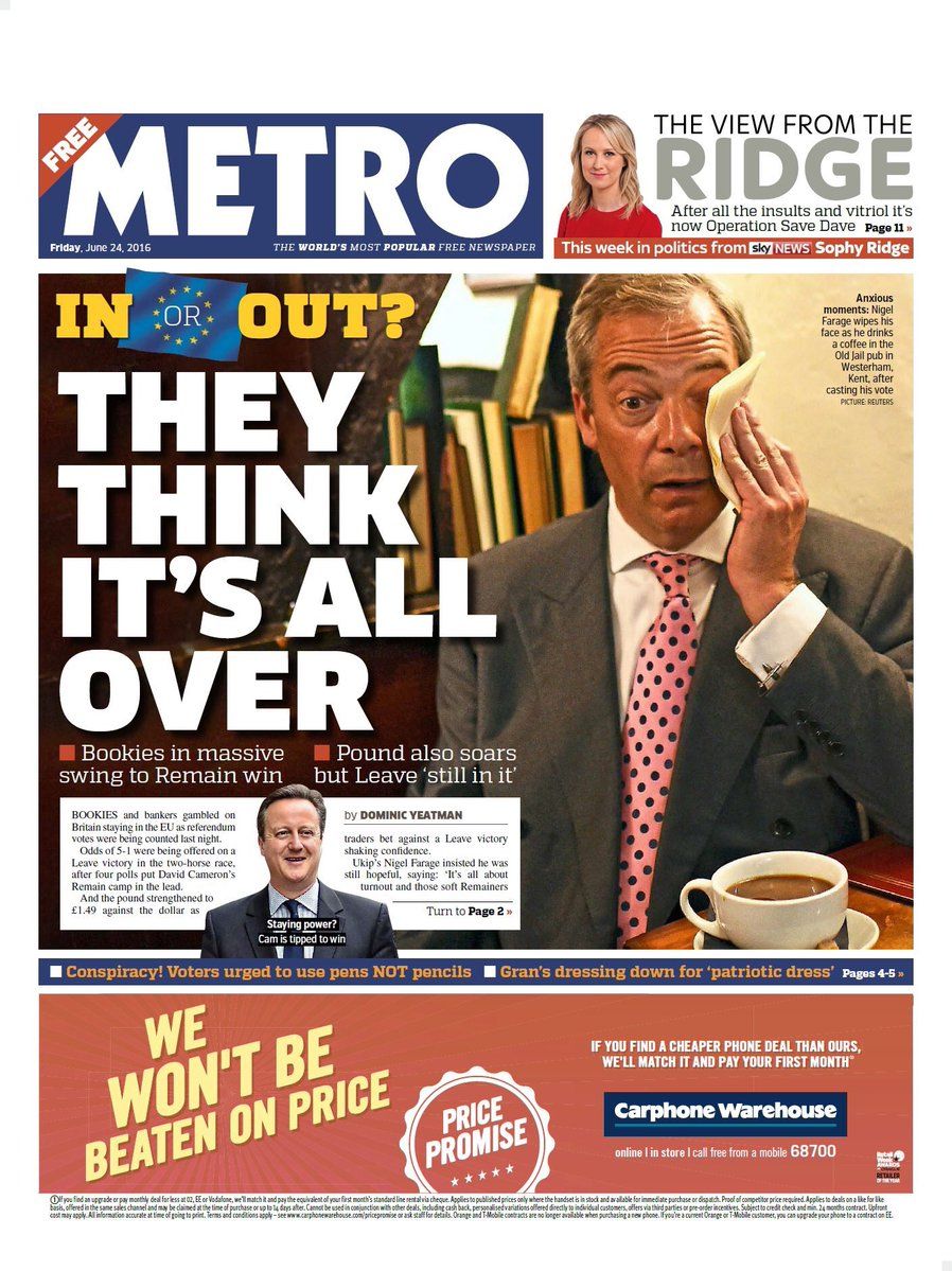 La evolución de las portadas de los diarios británicos la noche del recuento