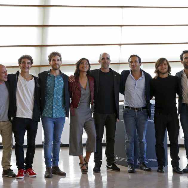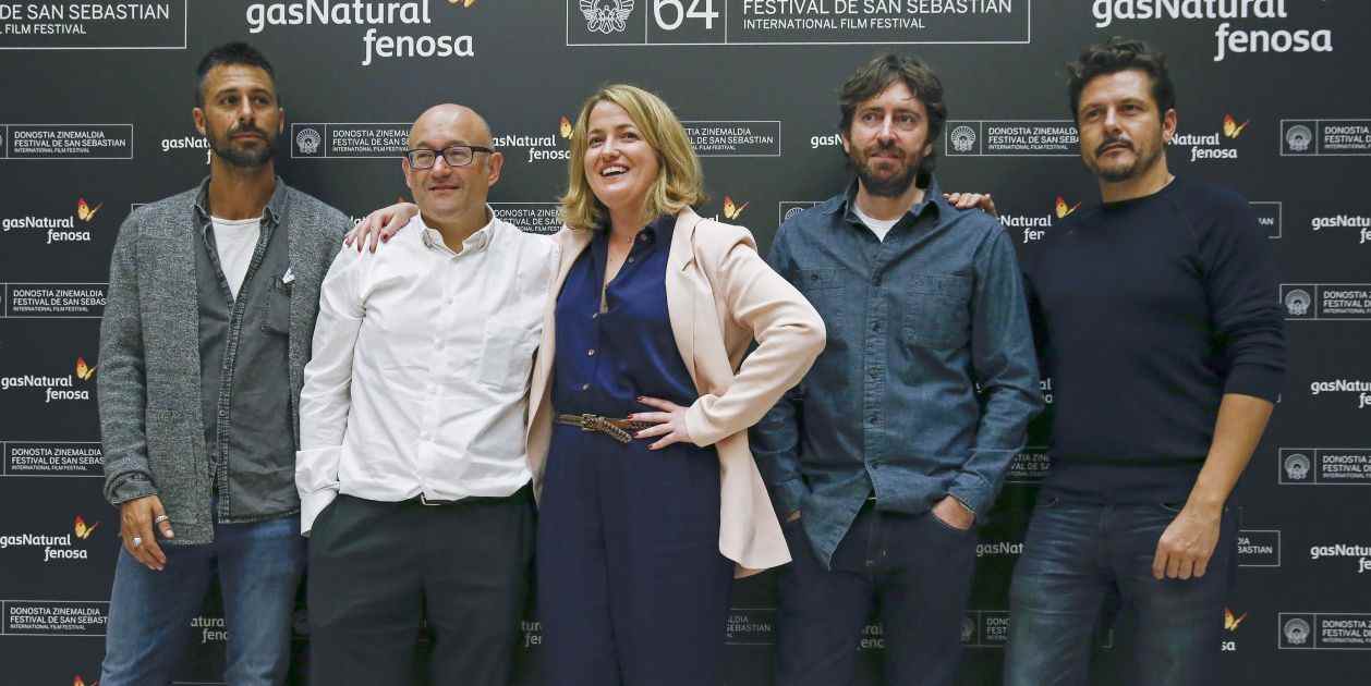 El actor Hugo Silva y los directores Daniel Sánchez Arévalo y Kike Maíllo, Adenai Pérez, de Gas Natural Fenosa, y el director de la 64 edición del Festival Internacional de Cine de San Sebastián, José Luis Rebordinos.