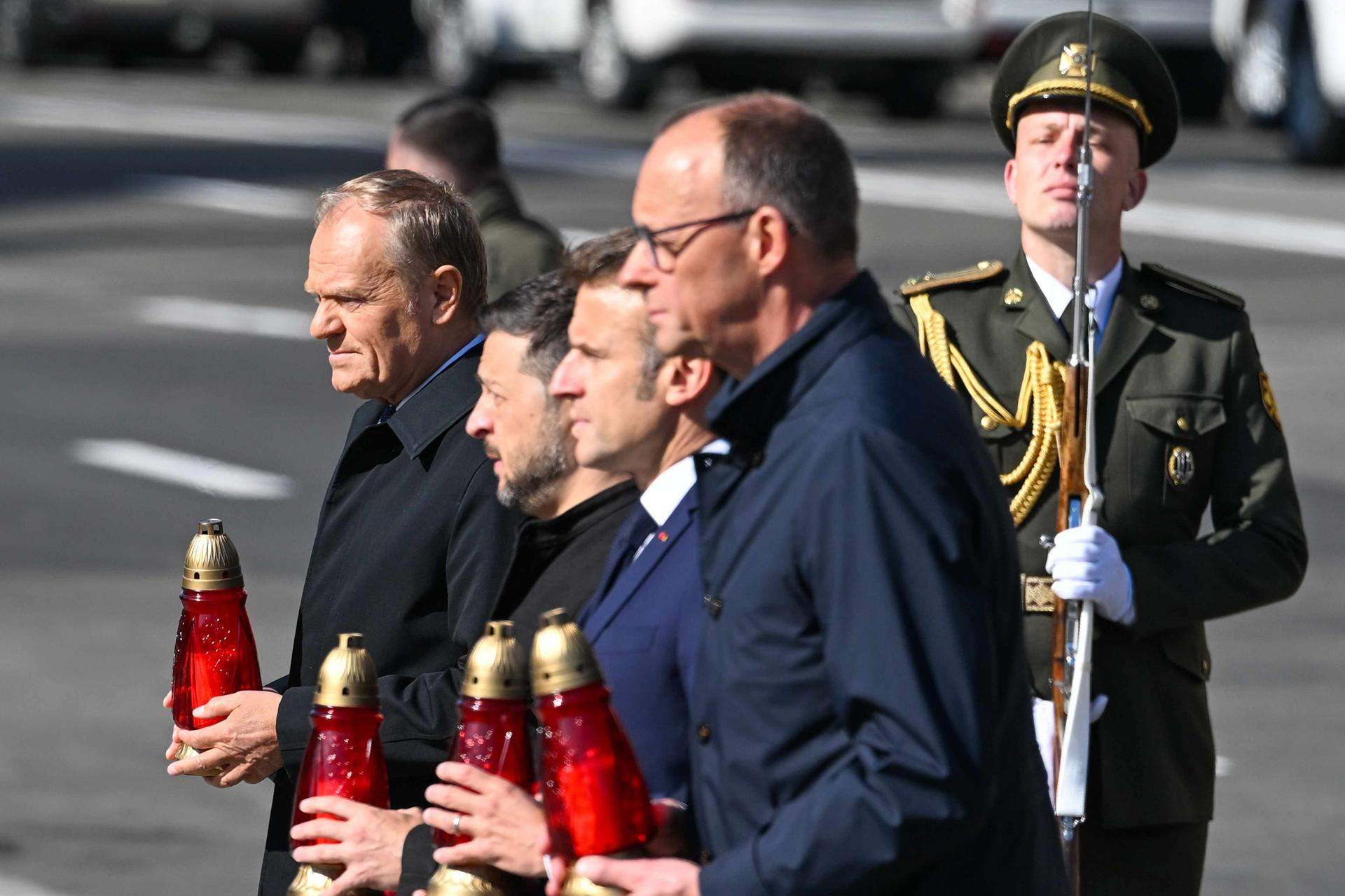 El presidente francés, Emmanuel Macron; el primer ministro británico, Keir Starmer; el recientemente investido canciller alemán, Friedrich Merz; y el primer ministro polaco, Donald Tusk. Todos ellos, junto a Zelenski, se han reunido telefónicamente con su homólogo estadounidense, Donald Trump, este sábado desde Kyiv, una conversación "centrada en los esfuerzos de paz" que el gobierno ucraniano ha definido como "fructífera". "Si Rusia está de acuerdo y se garantiza una verificación efectiva, un alto el fuego duradero y medidas para crear confianza pueden allanar el camino a las negociaciones", ha afirmado el responsable de Exteriores ucraniano, André Sibiga.