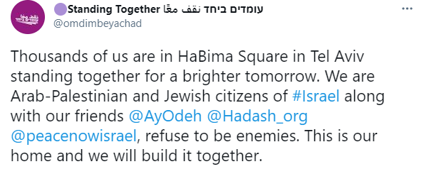 Ha sido la izquierda israelí, con movimientos activistas como Standing Together, Peace Now y el partido político de Hadash, la que ha organizado la concentración con el objetivo de conseguir a uno "mañana más brillante", tal como han explicado los primeros en su perfil de Twitter. "Este es nuestro hogar y lo construiremos juntos", han añadido.