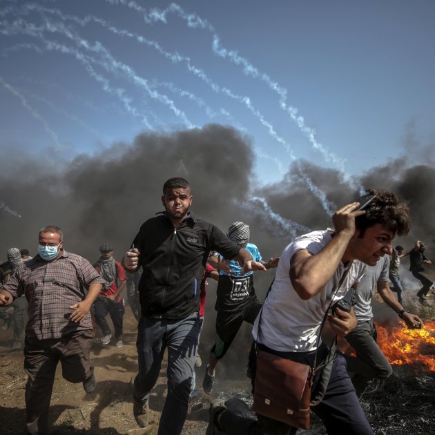 Los manifestantes comenzaron a congregarse hacia las 11.00 GMT en la zona delimitada por la valla de separación, tras la que los soldados israelíes comenzaron a disparar gran cantidad de botes de humo para impedir que siguieran acercándose. Un total de 56 personas resultaron heridas por impacto de los botes de humo, según indicó el ministerio de Sanidad de Gaza.