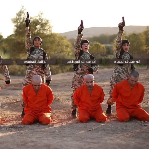Horrible. Video shows 5 #ISIS children executing 5 Kurds. Children from: Egypt, Britain, Tunis, Uzbekistan & a Kurd pic.twitter.com/rA3EZeuAmv