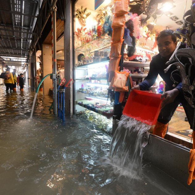 En Venecia la marea subió hasta los 156 centímetros sobre el nivel del mar —el máximo desde 2008—, lo que ha provocado la conocida como "agua alta", la inundación de sus calles y de la plaza de San Marcos, así como la suspensión de la red de transporte público urbano, los vaporetti.