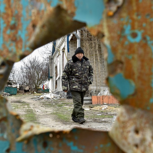 Imagen principal: un hombre camina por su patio después de los bombardeos cerca de Kyiv / Efe
