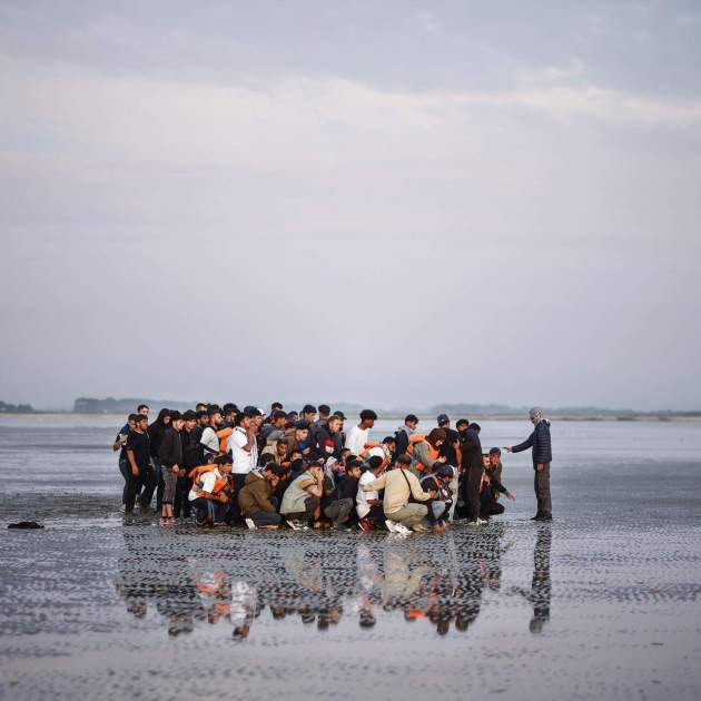 Imagen principal: Migrantes esperan en una playa para subir a una embarcación inflable y cruzar el canal de la Mancha, en Gravelinas, al norte de Francia, 17 de julio de 2025 / EFE