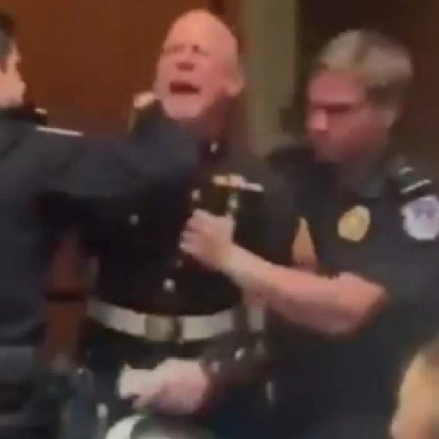 En un comunicado, la policía explicó que el hombre detenido había sido identificado como Brian McGinnis, de 44 años y de Carolina del Norte. De hecho, estaba en las listas del Partido Verde al Senado por Carolina del Norte. Se enfrenta a tres cargos de agresión a un agente de policía, y a tres cargos más de resistencia a la detención y aglomeración, obstrucción e incomodidad en una manifestación ilegal. El cuerpo también aseguró que los tres agentes tuvieron que ser atendidos por sus heridas. "El sospechoso, que se quedó enganchado con el brazo en una puerta para resistirse a nuestros agentes y volver a la sala de audiencias por la fuerza, también fue atendido", añadieron. Desde su formación han negado que él en ningún momento haya agredido a nadie. Según el relato de los policías, McGinnis "puso a todo el mundo en una posición peligrosa resistiéndose violentamente y luchando contra los intentos de los policías de sacarlo de la sala". También explicaron que el veterano "se quedó enganchado con el brazo en una puerta para resistirse a nuestros agentes y forzarse a volver a la sala de audiencias". "No se permiten protestas dentro de los edificios del Congreso. Hay muchos otros lugares en el recinto del Capitolio, en el exterior, donde sí se permiten manifestaciones", concluye el comunicado.