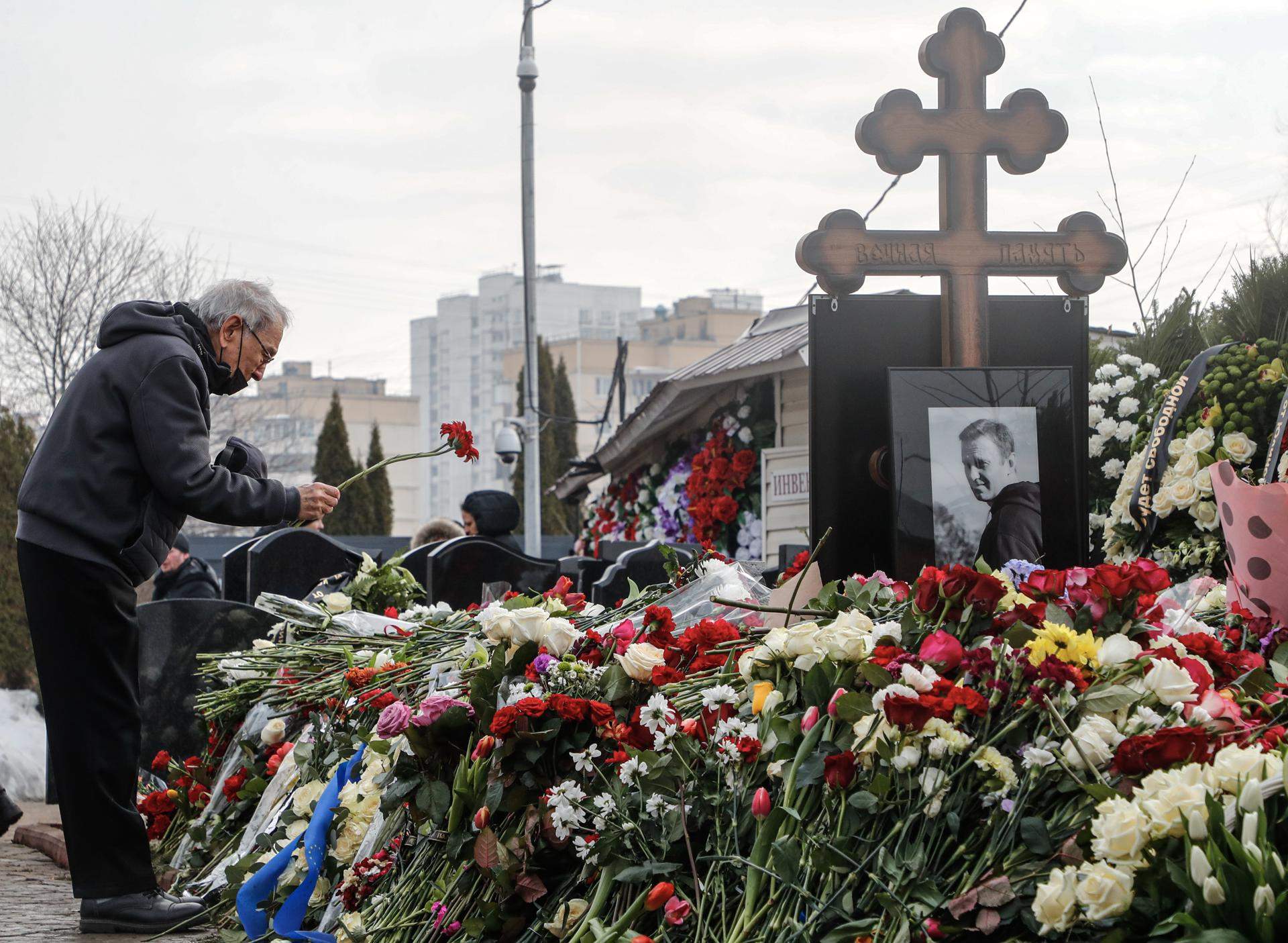La tumba de Navalni está totalmente cubierta por flores que casi han llegado a la altura de la cruz de madera que preside la sepultura. La gente también pone carteles, juguetes y otros objetos en recuerdo y homenaje al líder político, a los que sus seguidores consideran un mártir. El equipo de Navalni, con sus integrantes en el exilio, han agradecido hoy a través de Telegram a sus simpatizantes las muestras afecto hacia el opositor muerto. "No todo el mundo puede querer y ser querido de este modo", comentó en un vídeo Alla Abrosímova, madre de la viuda de Navalni, Yulia Navalnaya.