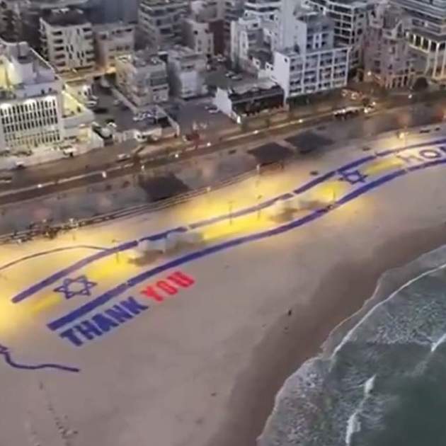Un ENORME cartel acaba de aparecer en la playa de TEL AVIV — dice “¡GRACIAS PRESIDENTE TRUMP!”