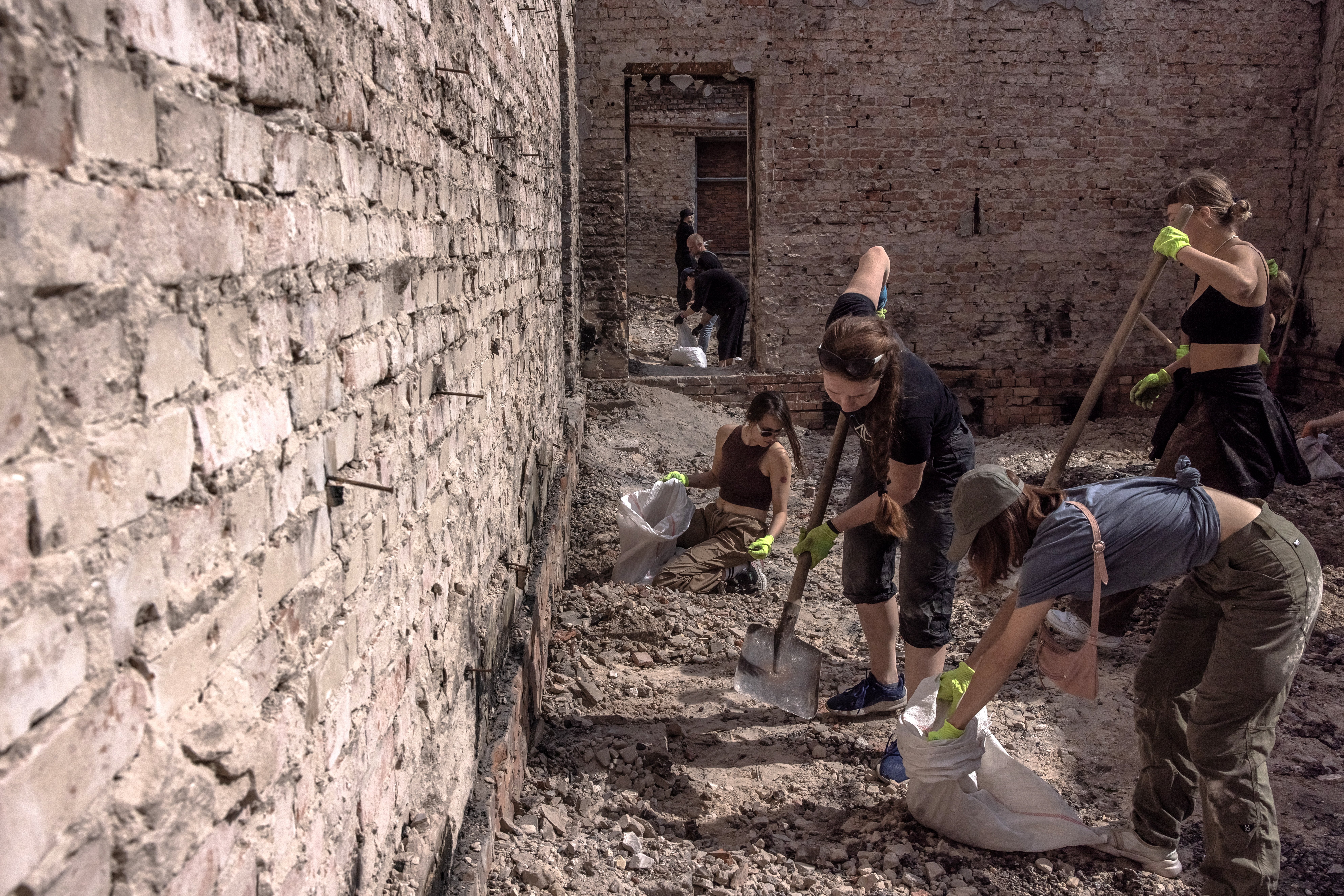 Imagen principal: voluntarios sacan escombros y limpian los escombros de una casa destruida por un bombardeo en Chernígov / Efe