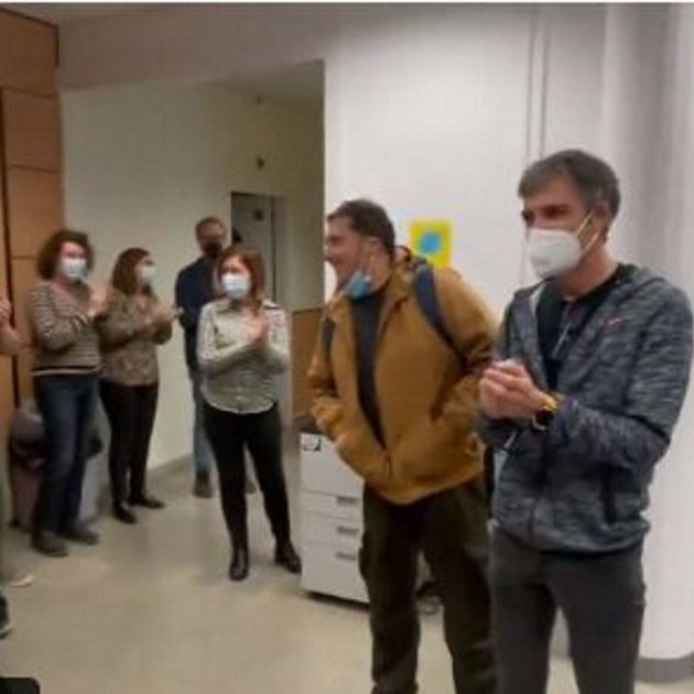 La redacción de Informativos de TV3 recibe con un aplauso a Lluís Caelles (@LluisCaelles) y Roberto Figueroa (@rbtofa) después de la cobertura periodística excepcional que han hecho en Ucrania pic.twitter.com/JE8ZRdUyC4