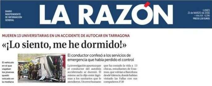 Pero en el caso que nos ocupa más de uno (o de una) debe haber tenido un disgusto. Mire que habría sido bonito un autocar de una escuela de por aquí cerca, ¿verdad? De esta manera podríamos haber ido a la puerta del centro a entrevistar compañeros y compañeras de los muertos. Y enseñar a la clase con los asientos vacíos. ¡Ooooh, que bonito luce! Y mostrar el pequeño altar improvisado en la puerta con flores y velas (eso es despacha de narices). Pero no, en el autocar viajaban extranjeros. Qué le vamos a hacer! Otra vez será. Mientras, mañana todavía especularemos un poquito, pero ya de bajada, y el miércoles ya lo dejaremos estar porque llega Semana Santa, momento para “desconectar” y “cargar pilas”, que estamos agotados (y agotadas) de tanto especular.