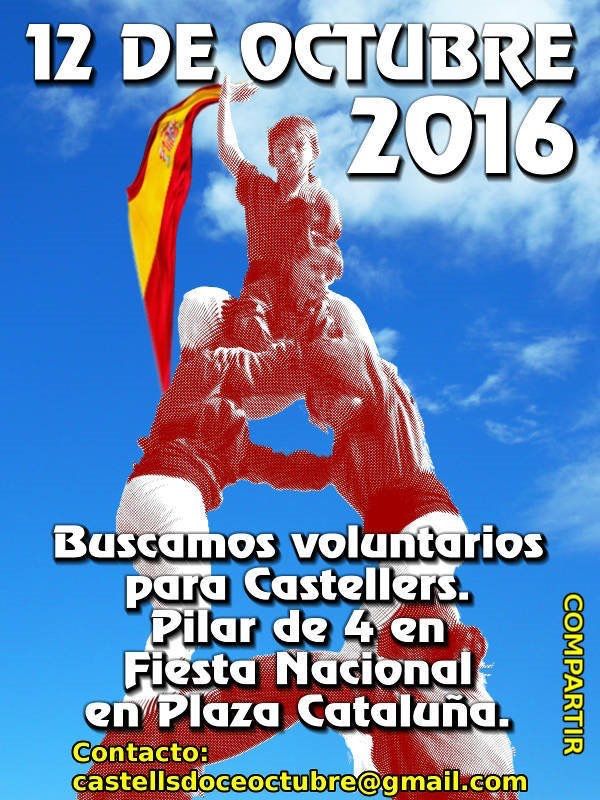 Como en nuestro país no hay gente que haga castells, como en nuestro país no hay colles castelleras (79), como en nuestro país no hay ciudades y pueblos con colla castellera, resulta que el unionismo radical que hace años se autootorga el título de ser la mayoría silenciosa y la Cataluña real (ellos lo escriben con Ñ) tiene que poner un anuncio para poder hacer un pilar de 4. ¡DE-MO-LE-DOR!