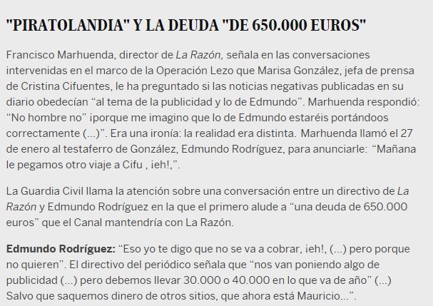 Pero para entender cómo funciona el mecanismo, lo mejor es leer la conversación entre Paco Marhuenda y Edmundo Rodríguez. Y, sobre todo, quedarse con la primera y la última palabra del texto: "Piratolandia". Como dice un apreciado compañero de la redacción de Elnacional, la palabra es una de las grandes aportaciones de Marhuenda al nuevo lenguaje. Creo que está a la altura del "compiyogui".