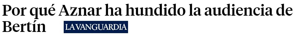 Efectivamente, Bertín es muy amable con el invitado, pero con Aznar lo fue todavía más. No entró en ningún tema, no ya polémico, sino mínimanente crítico. Como diría Ferran Monegal, aquello fue un masaje. E incluso le hicieron las puntas. Ahora bien, lo mejor de todo es que, conociendo al personaje, tan encantado de haberse conocido todo él, este fracaso habrá sido un golpe demasiado duro para que no descartamos que pronto haya un intento de reponerse mediáticamente del desastre...