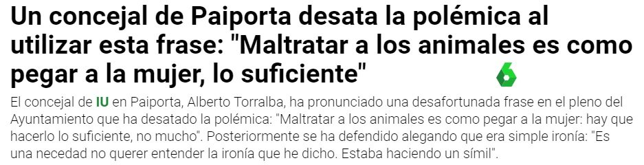 Ahora analizemos la noticia: 1/ acusan sin ningún tipo de duda al señor Torralba de haber dicho la expresión que le adjudican y 2/ acusan el señor Torralba de haberse justificado posteriormente con la excusa de la ironía.