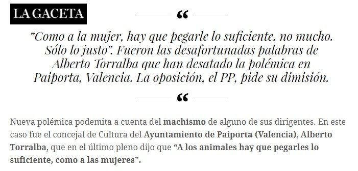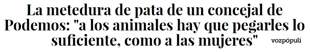 En la Gaceta le llaman machista y el PP pide su dimisión (supongo que no deben tener ojos, ni orejas, ni cerebro y, además, no han visto el vídeo). Y en OK diario (el medio de Eduardo Inda, el amigo de Villarejo) y en VoxPopuli no tienen bastante con la manipulación de origen. Para estos digitales no era suficiente dar por buena una noticia que se desmentía simplemente mirándose lo que sucedió realmente, sino que había que manipular todavía más la manipulación poniendo entre comillas y como textuales frases que ni fueron expresadas en la versión falsa. Cuádruple mortal con tirabuzón mirando a Móstoles.
