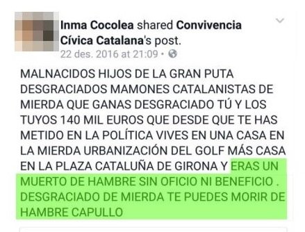 Nada que no hayamos visto a menudo. Es alguien que insulta a los catalanes y al presidente Puigdemont, como en la red también hay insultos a los españoles y al presidente Rajoy. Pero la novedad está en quien es la persona de la cual provienen los insultos: