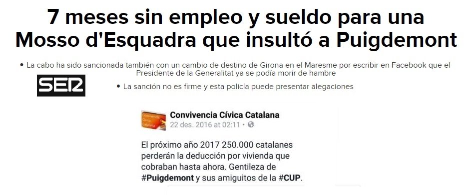 Por lo tanto, es una Mossa D'Esquadra con grado de cabo dando apoyo a la gente de Convivencia Cívica Catalana y que aprovecha para decirle al presidente de la Generalitat muerto de hambre, vividor, capullo y deseando su muerte.