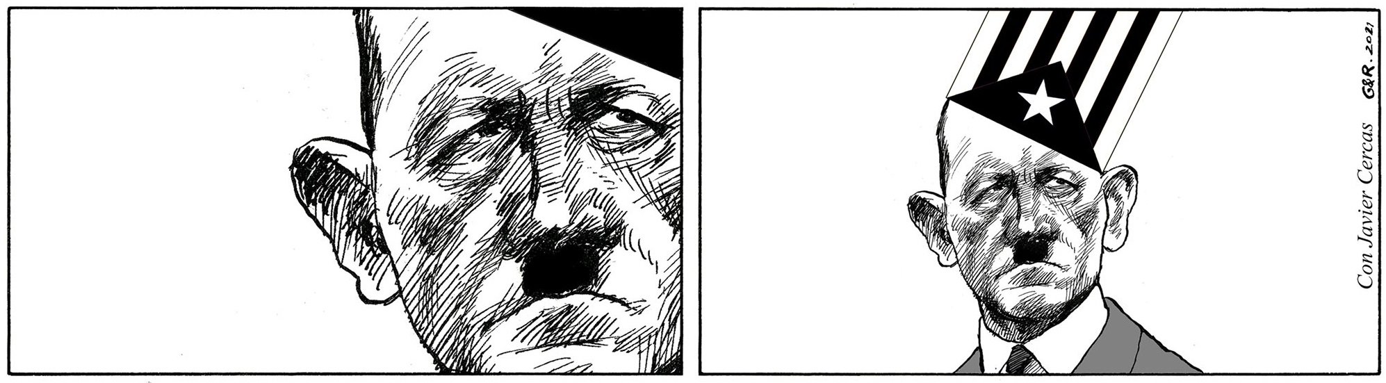 El dibujo es la manera con la que los autores han querido manifestar su apoyo a Javier Cercas. ¿Por? Pues por la acalorada respuesta de una pequeña parte de los indepes a unas declaraciones del escritor Javier Cercas, que últimamente ha optado por convertirse en uno de los látigos antiindepe. Unos y otro se buscan hace tiempo. Y de vez en cuando se encuentran. Cosa que alegra a los dos porque les hace girar la rueda. Como no puede ser de otra manera, mientras no se traspasen los límites del insulto, la amenaza y el código penal en general, Cercas tiene que poder decir lo que considere oportuno y tiene que poder ser criticado. Y miles de críticas no son ningún acoso, sino que son eso, miles de críticas. Y no, no es ninguna provocación llevar a Cercas a un programa de TV3 para que opine lo que le apetezca. Lo que no es ninguna buena idea es ir por el mundo de demócrata, pero negando a los que piensan diferente que no sólo puedan pensar diferente sino que puedan expresarlo. En TV3 y donde sea. Ahora bien, si queremos que TV3 sea una especie de secta donde sólo salga quien te da la razón gritando mucho, lo decimos y listos.