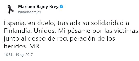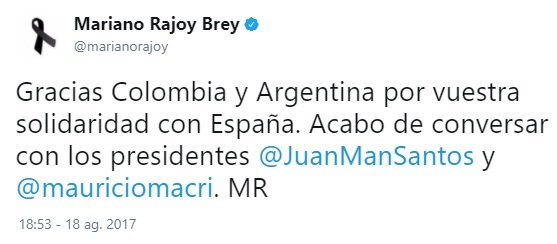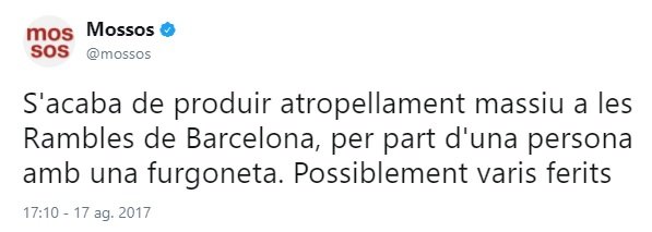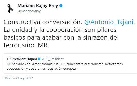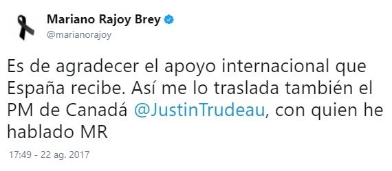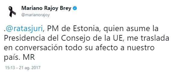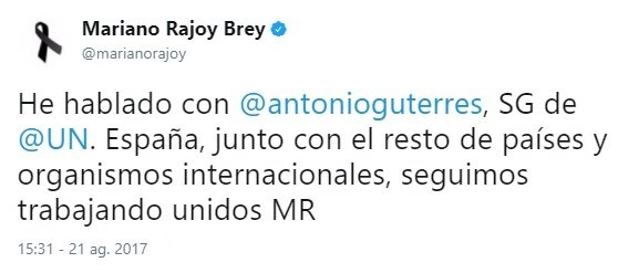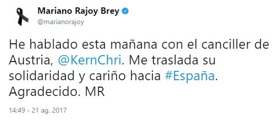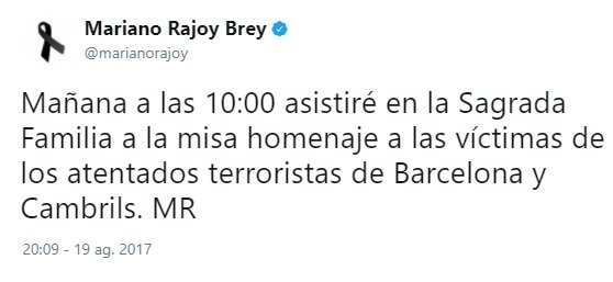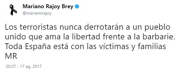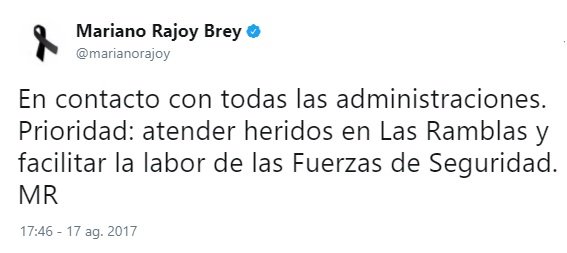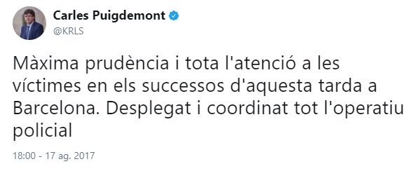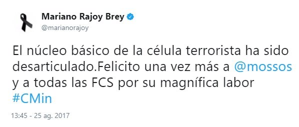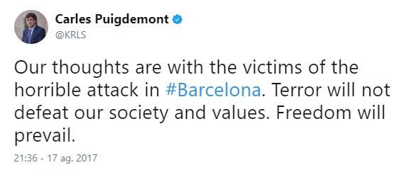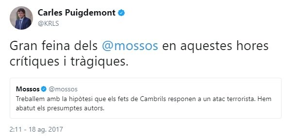 Y el tercero, de madrugada, demuestra que estaba siguiendo los acontecimientos. Y ocho horas después del primer atentado hace el primer reconocimiento público al trabajo de los Mossos. Ocho horas más tarde, no una semana y un día después
