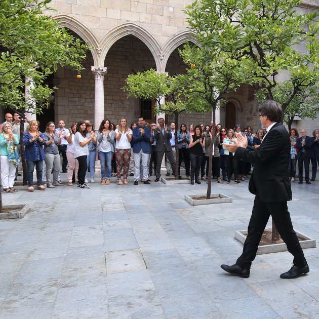 “Esto continuará. Continuarán las detenciones y las amenazas”. Estoy hablando con un conseller que está en el Palau de la Generalitat a través del teléfono rojo que sólo tenemos él y yo. Acaba de salir de la reunión del Govern. “Jordi, escúchame. Tenemos un sentimiento muy compartido, puedes poner mi nombre o no, da igual, el protagonista aquí es todo el Govern, con el president a la cabeza. A las ocho menos cuarto me han informado de lo que estaba pasando, yo todavía estaba en casa. No he tenido mucho tiempo para pensar en qué estaba escuchando, he tenido que espavilarme y primero he ido a mi despacho y después al Palau, donde ahora estoy.” Habla tranquilo y noto perfectamente como el conseller está haciendo otra cosa, o más de una, mientras habla conmigo, no sabría decir qué, por eso él es conseller y yo no, yo no puedo hacer más que una cosa a la vez . “No soy nada milhomes, no, y lo sabes. Pero me siento muy tranquilo, la verdad, aquí estamos todos realmente tranquilos. Estoy muy mentalizado de lo que tengo que hacer y sé perfectamente lo que puede pasar y lo que me puede pasar. Me siento privilegiado de vivir este momento histórico desde el Govern.” El conseller hace una pausa, habla con alguien, me pide que espere y yo aprovecho para preguntarle si se lo esperaba. “Hmm, hombre, Galves, ya sabes como estamos, pero precisamente desde hace dos días he visto aún más claro que utilizarían todos los medios.” Es entonces cuando le he arrancado la última frase antes que colgara. “Después quizá pueda hablar. O no. Estoy muy liado de trabajo, ahora debe hablar el president y te pido que no publiques nada hasta que el president haya hablado, porque habla en nombre de todo el Govern y de todo el país. Estamos tranquilos y determinados”. “¿Lo dices para que me quede más tranquilo, ¿verdad, conseller?”, le espeto. “No, no, de ninguna manera, Jordi, te lo digo porque es la verdad. Y te aseguro una cosa: llegaremos hasta el final”. El teléfono rojo ya no funciona. Ha colgado.