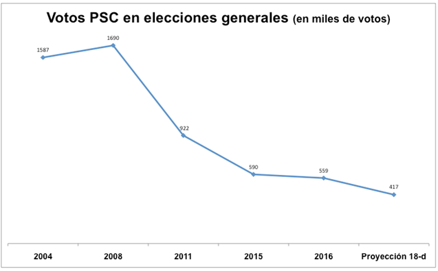 La pasokización aún no ha llegado al PSOE, pero es ya un hecho consumado en el PSC. Y no es sólo una cuestión de números. Hay aspectos cualitativos aún más importantes en esa jibarización política.