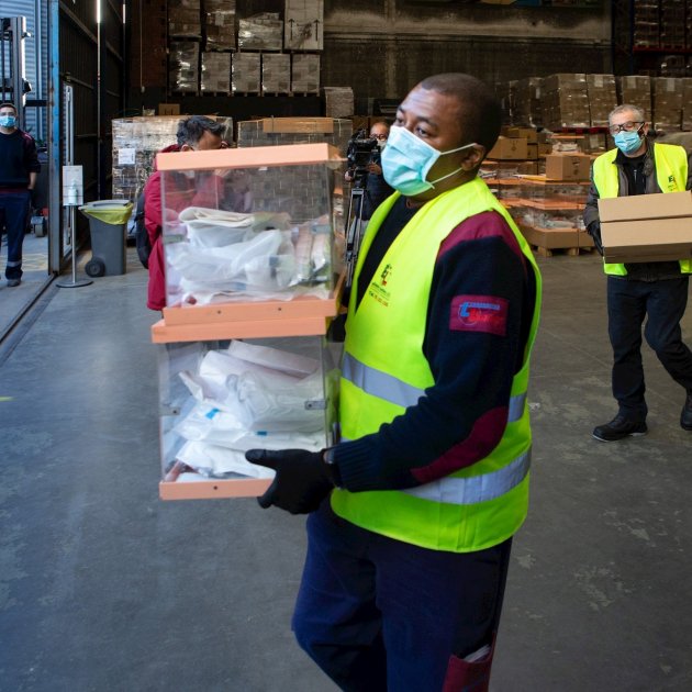 Imagen principal: Operarios de los Talleres Municipales del Ayuntamiento de Barcelona trabajan en el almacén donde se guarda el material electoral que se utilizará en las elecciones catalanas del 14 de febrero y ha empezado a distribuirse a los colegios electorales / Efe