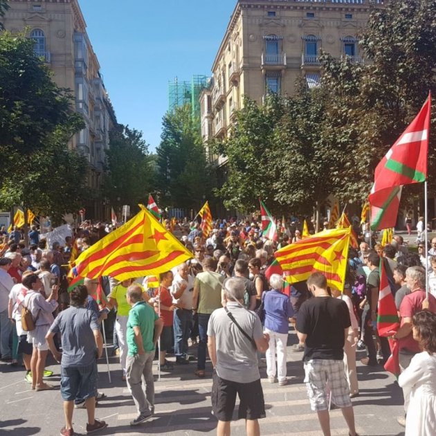 La marcha ha arrancado a las 17.00 horas de la plaza del Buen Pastor, y antes de empezar Boya ha mostrado su agradecimiento a los asistentes por "esta muestra de apoyo". "Es importante ganar el 1-O, pero también es importante defender el resultado y por eso contamos con la fuerza de otros pueblos, principalmente de los vascos que hoy están aquí," ha añadido la diputada de la CUP.