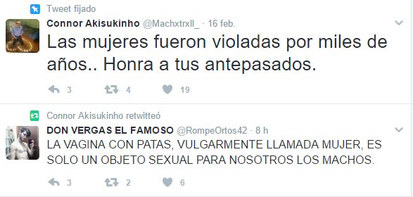 De hecho, además de amenazar a Junqueras, los dos han hecho polémicos tuits contra las mujeres, degradándolas, tratándolas de meros objetos sexuales y haciendo apología de la violación.. Las dos cuentas siguen todavía a estas horas activas y los mensajes no han sido borrados.