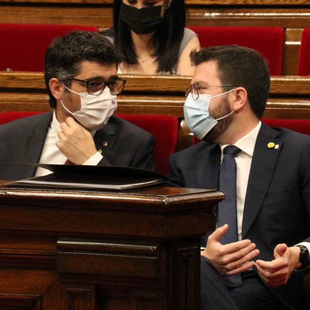 En la imagen principal, Aragonès y Puigneró en el hemiciclo. / ACN