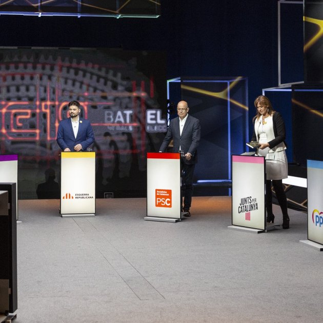 Pero a pesar de este poso, así como la otra cabeza de lista independentista presente hoy en el plató de Sant Joan Despí sí que ha disparado desde el minuto uno contra JxCat y sobre todo contra ERC, estos dos últimos han comenzado destinando los esfuerzos a combatir los otros flancos. Rufián se ha dedicado al PSOE y los Comunes, mientras que Borràs se ha concentrado más en el PP, Cs y VOX.