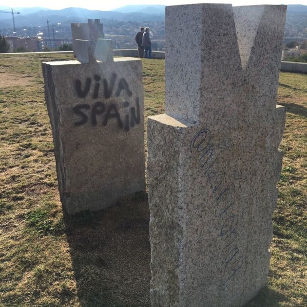 El Ayuntamiento de Sant Cugat del Vallès ha denunciado en un mensaje en Twitter un ataque españolista al monumento La rosa dels vents de Pep Codó. Como se puede ver en las imágenes, se ha hecho una pintada donde se puede leer "Viva Spain".