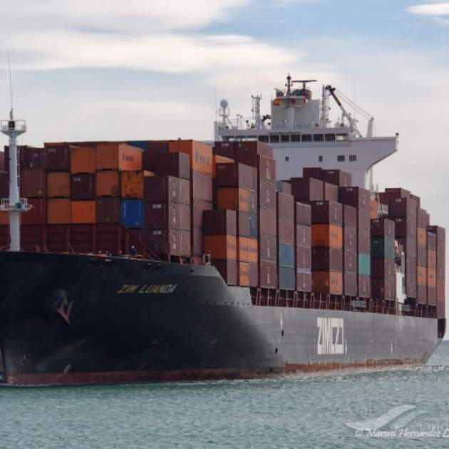 Imagen principal: el buque de carga ZIM Luanda, acusado de transportar acero de Sidenor hacia Israel / Manuel Hernández (@soc_aire), en VesselFinde