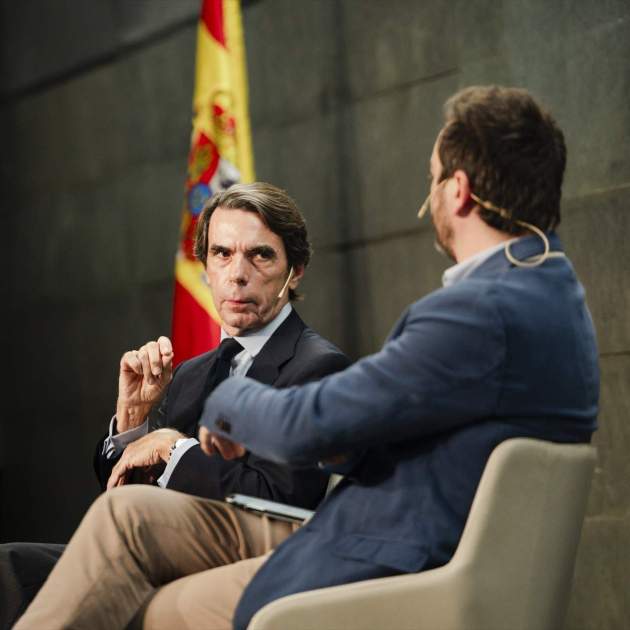 Quien fue el jefe del ejecutivo estatal entre 1996 y 2004 ha reclamado "prudencia" a Feijóo —entre el público—, ya que una posible moción de censura que no prosperara podría generar "frustración" ciudadana y llevar al país a "un callejón sin salida" que favorecería "posiciones extremistas". "Hay que explicar las cosas muy claramente: o moción de censura o las elecciones", ha señalado, y ha insistido en que actualmente "no hay materiales" para tal propuesta. Sobre todo, en un escenario en el cual Vox busca "acabar con la convivencia en España" como hacen el PSOE y los "partidos populistas", motivo por el cual ha apelado a la responsabilidad ciudadana de no inhibirse en las próximas elecciones —que espera que sean "pronto"—.