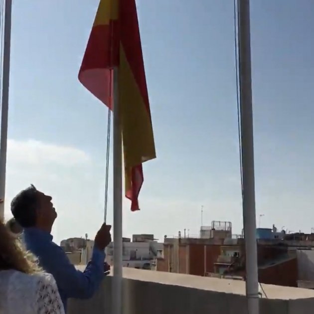 El alcalde del psc de #Badalona permite que los independentistas descuelguen la bandera de España 👎. Mientras nosotros estemos en el Ayuntamiento eso no pasará jamás. Por eso, personalmente he vuelto a izar la bandera nacional. pic.twitter.com/Zkk9YngmB0