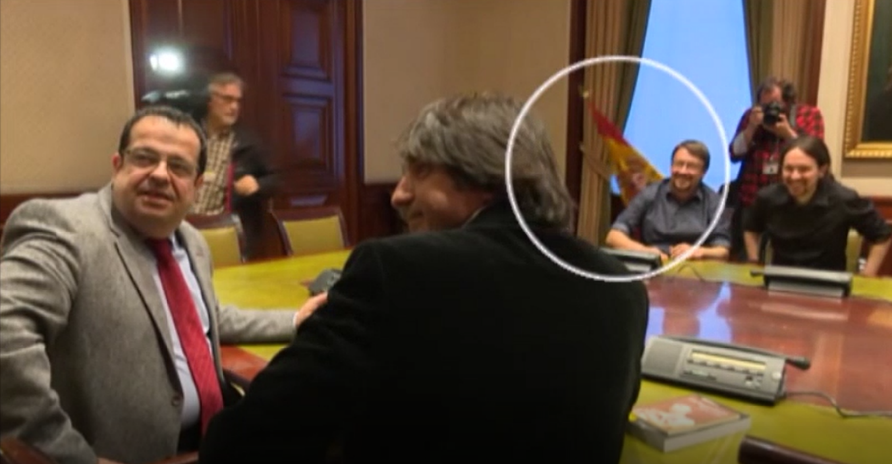 La anécdota ha cogido un doble sentido, teniendo en cuenta quiénes eran los invitados de Iglesias, con el coordinador por el Pacte, Joan Ignasi Elena, al frente. Las risas han sido inevitables. El líder de la formación morada incluso se ha puesto las manos en la cabeza al ver la escena.