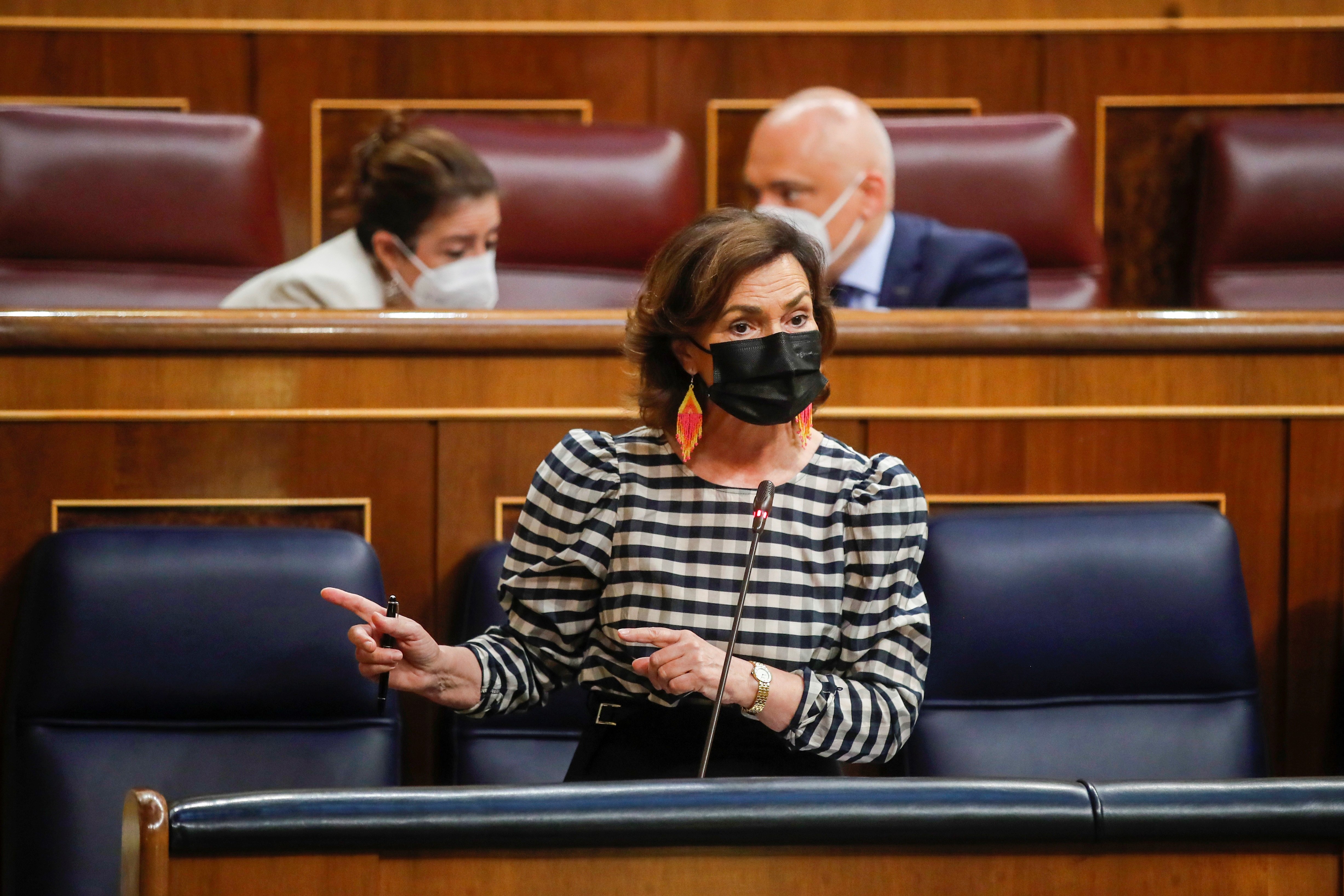 El monotema en Madrid es ya, claramente, el indulto a los presos políticos catalanes. Faltan sólo cuatro días para la nueva manifestación de Colón, que volverá a reunir a las tres derechas para la fotografía. Este clima se ha trasladado de nuevo este martes al Congreso de los Diputados. Hasta siete preguntas han acabado derivando hacia la medida de gracia. El Partido Popular, siguiendo la estela de Vox, ha ido con todo. Y, en ausencia de Pedro Sánchez por viaje internacional, se han encontrado enfrente a la vicepresidenta primera, Carmen Calvo, que les ha desafiado: "Si son valientes, recojan firmas en Catalunya".